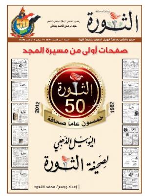 بمناسبة اليوبيل الذهبي لصحيفة الثورة تم إصدار ملحق خاص بعنوان صفحات أولى من مسيرة المجد.