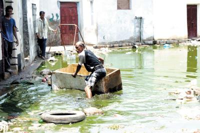 > مواطنون‮: ‬ ‬صرنا بلا مأوى وأطفالنا مهددون بالموت وبيوتنا تهالكت في‮ ‬طفح المجاري‮ ‬وبعض الأسر تركت المنازل في‮ ‬حي‮ ‬غليل‮ ‬