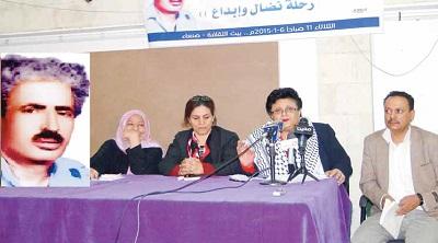 وقالت: نحن نحتفي بمناضل وشاعر ومفكر استثنائي استطاع أن يكرس حضوره النوعي بين البسطاء والفقراء وأن يكون شاعرهم وصوتهم الرائد فهو مبدع انتصر لإنسانيته وسخر قلمه وزمنه لأن يكون شاعر الجياع وممثلهم موقفا وفكرا وريادة في لحظة تاريخية امتلأت بالمتناقضات على كل المستويات.