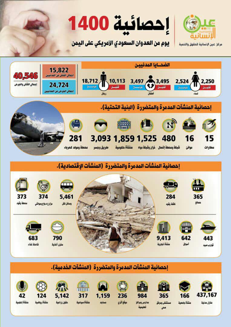 40 ألفاً و546 شهيداً وجريحاً جراء العدوان السعودي الامريكي وحلفائه خلال 1400 يوم إنفوجــرافيك On يناير 24, 2019 Share Share FacebookTwitterWhatsAppTelegramGoogle+البريد الإلكترونيPrint
