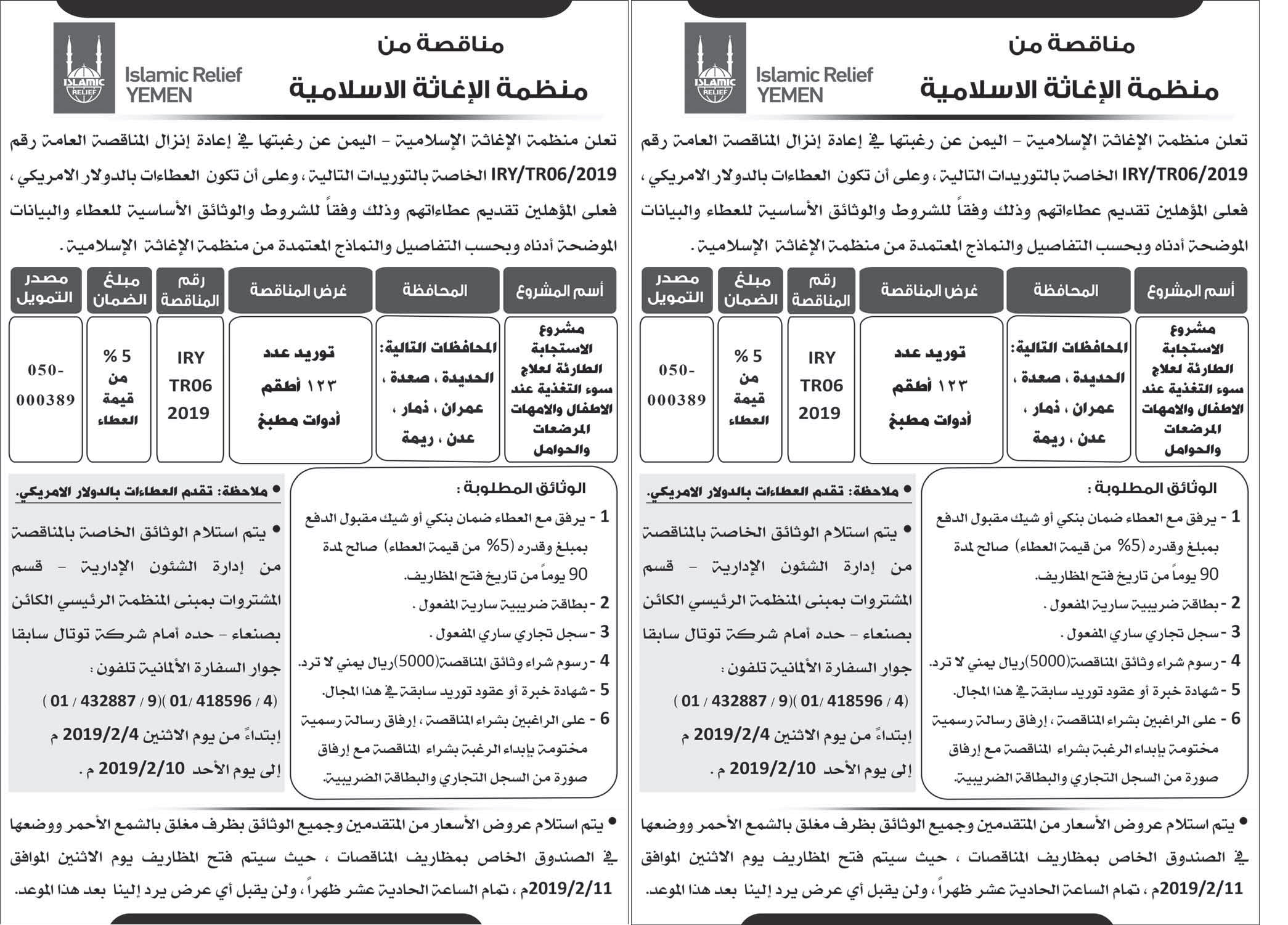 إعلان مناقصات من منظمة الإغاثة الإسلامية مناقصات On فبراير 4, 2019 Share Share FacebookTwitterWhatsAppTelegramGoogle+البريد الإلكترونيPrint