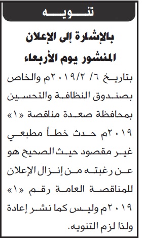إعلان تنوية بالإشارة إلى الإعلان المنشور يوم الأربعاء اخرى On فبراير 7, 2019 Share Share FacebookTwitterWhatsAppTelegramGoogle+البريد الإلكترونيPrint