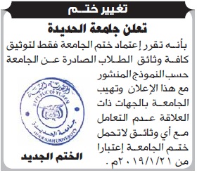 إعلان جامعة الحديدة عن تغير ختم الجديد اخرى On فبراير 11, 2019 Share Share FacebookTwitterWhatsAppTelegramGoogle+البريد الإلكترونيPrint