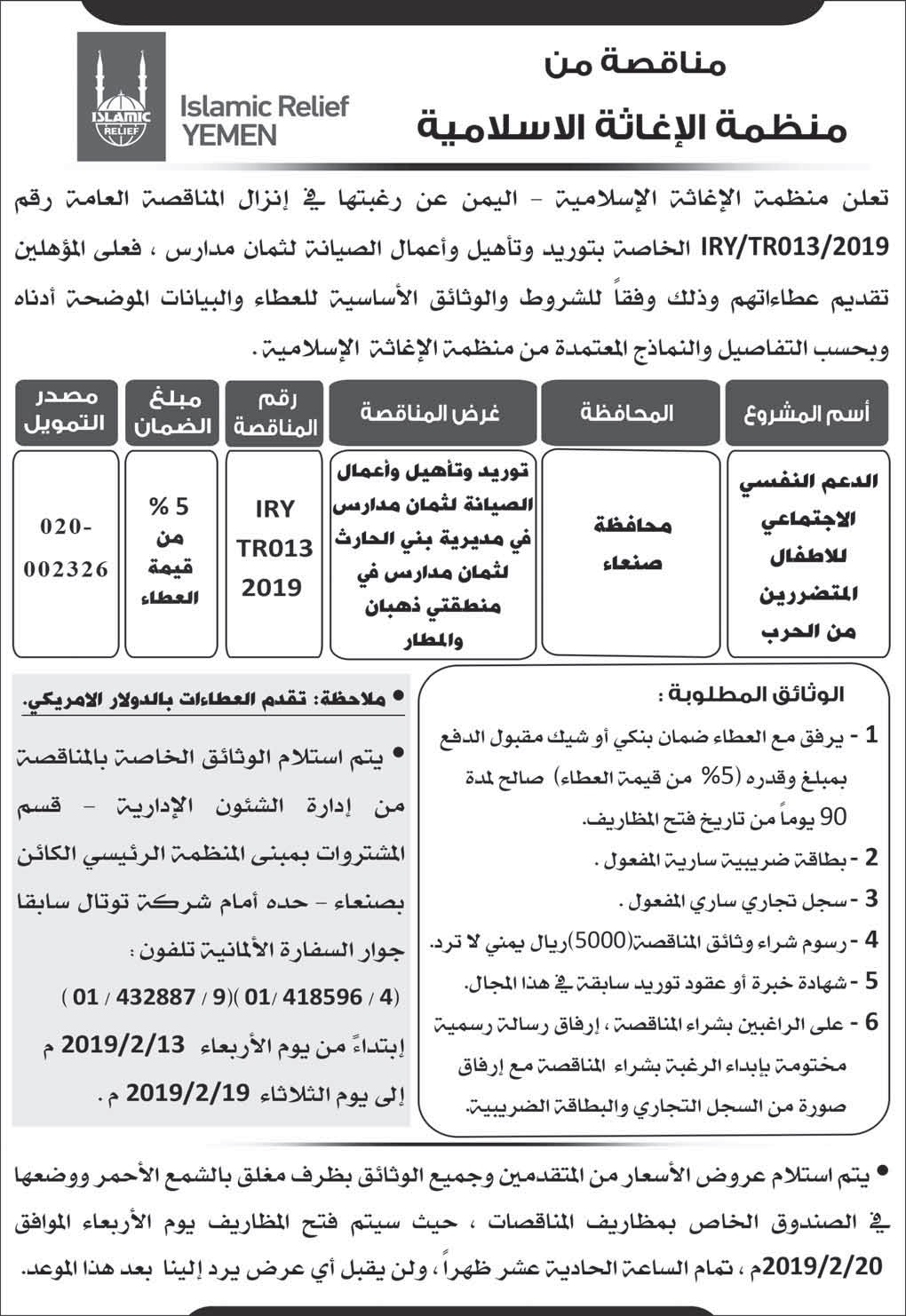 إعلان مناقصة من منظمة الإغاثة الإسلامية مناقصات On فبراير 13, 2019 Share Share FacebookTwitterWhatsAppTelegramGoogle+البريد الإلكترونيPrint