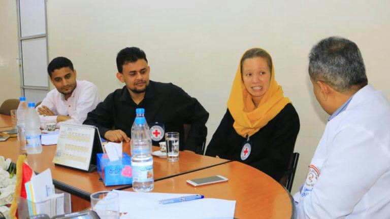 مناقشة أوجه دعم لجنة الصليب الأحمر لهيئة مستشفى الثورة بالحديدة