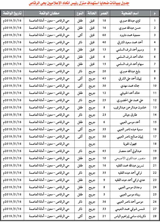 وفي هذا التقرير التوثيقي سيتم استعراض ما رصده ووثقه اتحاد الإعلاميين اليمنيين، في آخر جرائم دول التحالف باستهداف منزل رئيس اتحاد الإعلاميين اليمنيين، والتي تجاوزات في وحشيتها ليصل عدد ضحاياها إلى (7) قتلى ثلاثة منهم من أسرة رئيس الاتحاد، اثنان من أبنائه ووالدته والبقية من السكان المجاورين، فيما وصل عدد الجرحى إلى (60) جريحاً من ضمنهم عبدالله صبري رئيس الاتحاد ونجله الأكبر ووالده، والبقية من السكان المجاورين لمنزله والذين تضرروا نتيجة القصف.