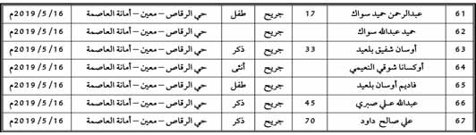 التقط (عبدالله صبري) أنفاسه ثم واصل حديثه معنا قائلاً:” بالمجمل فإن هذه الحادثة أفضت إلى استشهاد أمي الغالية واثنين من أبنائي (حسن) و(لؤي) فيما أصبت أنا بكسر في رجلي اليسرى وتعرضت رجلي اليمنى بالكامل لشظايا وجروح، بليغ تعرض لجروح سطحية أما والدي فقد تعرض لرضوض في الجسم وكسور في الأضلاع، والحمدلله تلقى هو وبليغ العلاج في المستشفى ووضعهما متماثل للشفاء بينما زوجتي وابنيَّ الاثنين (نشأت) و(صبري) الحمدلله لم يصابوا بأذى، وكانت نجاة زوجتي عاملاً مساعداً في انقاذنا”.