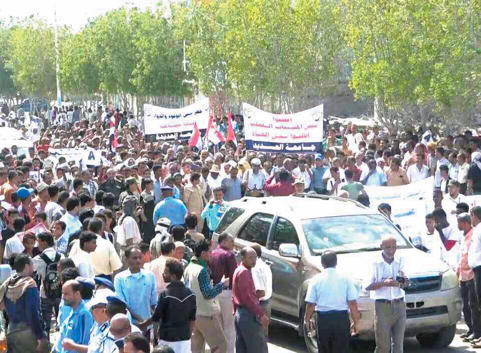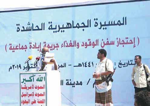 المسيرة الجماهيرية في الحديدة تؤكد أن احتجاز العدوان سفن الغذاء والوقود جريمة حرب وابادة جماعية