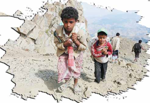 بين حين وآخر، يستيقظ كثير من أطفال اليمن تحت ركام منازل بلا جدران، لا صوت حولهم غير صوت القنابل ولا يد تضمهم سوى يد الآلة العملاقة التي تحاول إخراجهم من تحت الأنقاض، وخلال خمس سنوات من العدوان على اليمن، عاش الأطفال حياة مريرة بين إصابات وإعاقات ومجاعة ويُتم وأمراض جسدية ونفسية وأوبئة فتاكة وانتهاكات واعتداءات ونزوح وحرمان من التعليم، وما يتجاوز ذلك إلى القتل المباشر بكل الوسائل المتاحة.