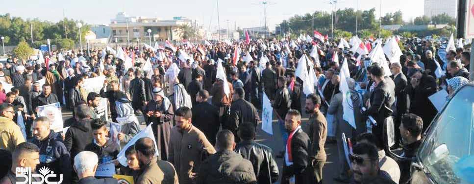 تجمع الآلاف، أمس الثلاثاء في ساحة الطيران وسط محافظة البصرة لاستقبال جثمان نائب رئيس هيئة الحشد الشعبي، أبو مهدي المهندس، الذي استشهد في غارة جوية أمريكية.