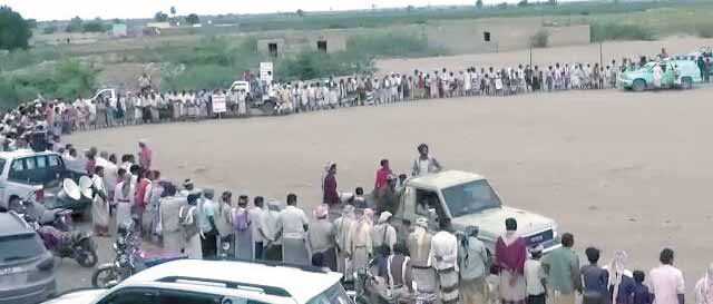 وأكدوا في الوقفة التي شارك فيها مدير المديرية محمد صومل ومشرف المديرية استمرارهم في رفد جبهة الساحل الغربي بالمال والرجال والعتاد حتى تحرير أرض تهامة من دنس الغزاة والمحتلين وجعل رمال الساحل الغربي وبحرها نكال ومهلكة كل من تسول نفسه احتلال أي شبر من أرض تهامة والساحل الغربي .
