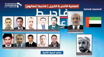 محافظة البيضاء: والمسؤول الأمني فيها عن الخلية الخائن محمد محمد عبدالقادر العبدلي منتسب للشرطة العسكرية مقبوض عليه، ولا زال العمل جاريا في متابعة بقية عناصر هذه الخلية.