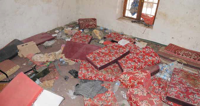 اختار المرتزقة عددا من البيوت وحولوها إلى ثكنات عسكرية ومخازن للسلاح والذخائر والمواد الغذائية، ويمكن معرفة تلك البيوت او الثكنات دون أن تدخلها، فحول تلك البيوت أكوام من قنينات المياه المعدنية الفارغة، تبدو من بعيد وكأنها تلال من الجليد.