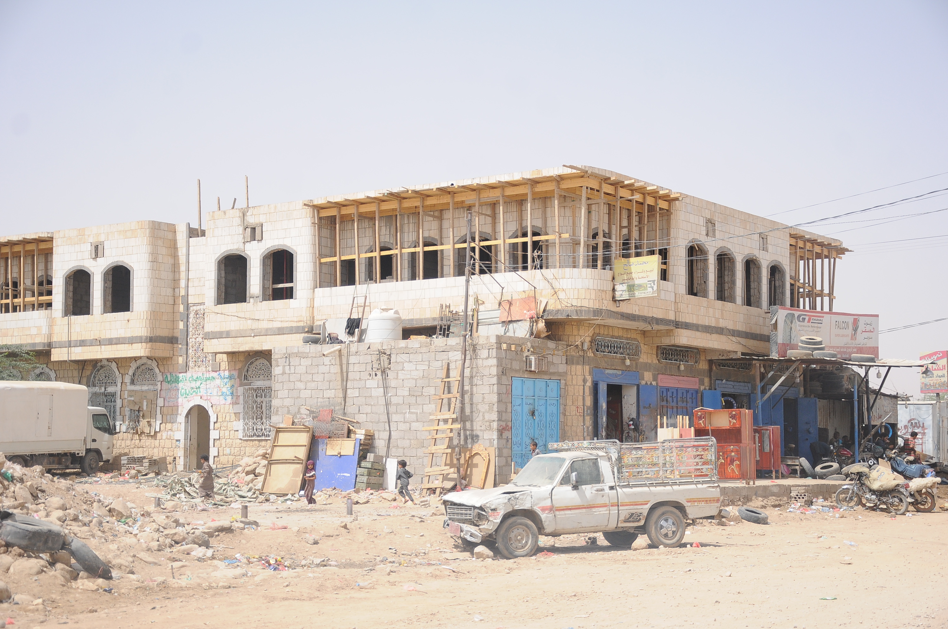 رغم ذلك، كانت جدران بعض المنازل ذات الطابع المعماري الجوفي الفريد (مبنيَّة من اللّبْن) محتفظة بآثار المواجهات والبعض الآخر مهدمة بكاملها بغارات الطيران السعودي الإماراتي، وعلى جدران الكثير منها رسوم غرافيتية تحمل في ملامحها آيات الشكر والثناء لقيادات العدوان على اليمن، وعبارات الويل والثبور لمن لم يسمحوا بدخول المحتل السعودي والإماراتي والأمريكي إلى صنعاء، وقدموا في سبيل ذلك كل شيء.