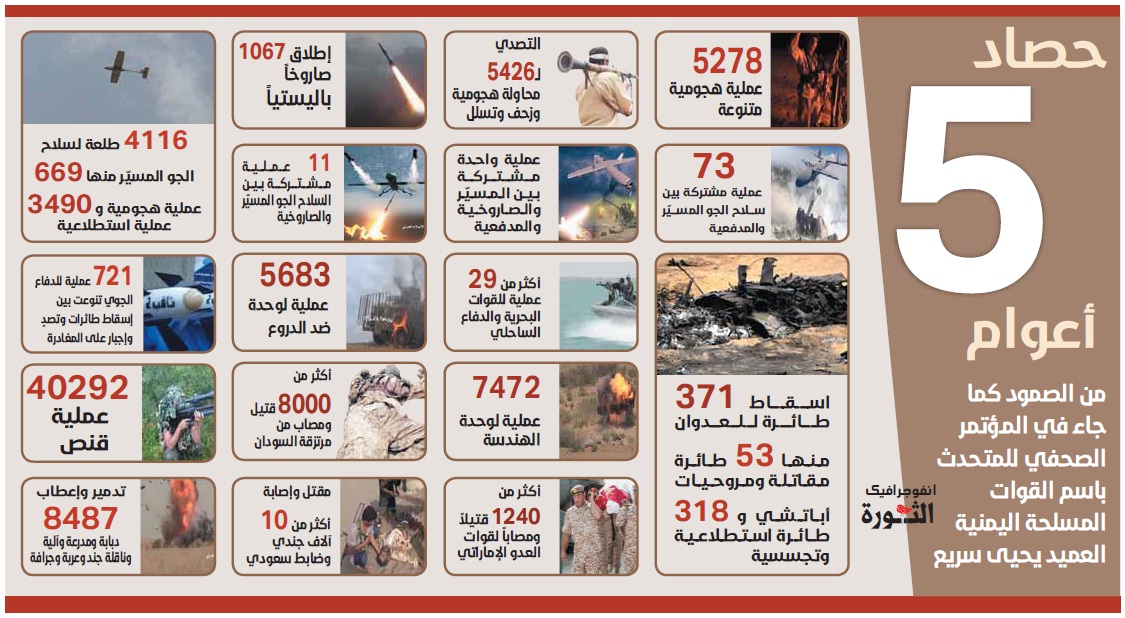 حصاد خمسة أعوام من الصمود إنفوجــرافيك On مارس 24, 2020 Share Share FacebookTwitterWhatsAppTelegramGoogle+البريد الإلكترونيPrint