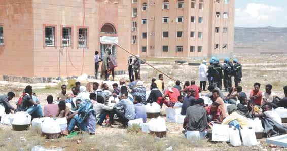 إلى ذلك قدم فرع الهلال الأحمر اليمني بالمحافظة كميات من المياه المكلورة لمركز الحجر الصحي بقحازة.