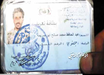 القتيل علي محمد صالح أبو صريمه قائد جبهة قيفه كما هو موضح من الصورة التي عادة تطبعها قوات الشرعية للقياديين من قتلاها.