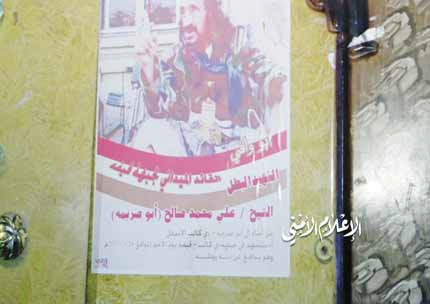 هنا أحد قياديي القاعدة العقيد علي صالح محمد أبو صريمه وقد قتل كما هو واضح من الصورة ضمن قوات ما تسمى الشرعية وكان قائدا للكتيبة الأولى من اللواء 177 في ما يسمى الجيش الوطني