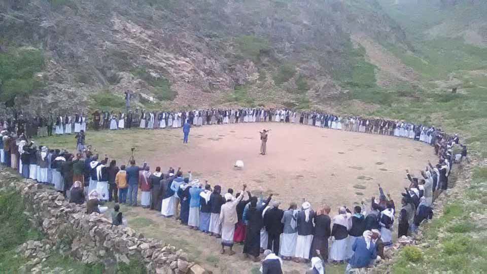كما نظم أبناء مديرية كسمة بمحافظة ريمة أمس وقفة قبلية تنديداً باستمرار تحالف العدوان في احتجاز سفن المشتقات النفطية ورفضاً للتطبيع مع الكيان الصهيوني .
