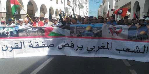 وعلى صعيد متصل، تظاهر العشرات من النشطاء المغاربة، قبل عدة أيام، أمام قبة البرلمان بالعاصمة الرباط، ضد التطبيع مع إسرائيل، وعبروا عن رفضهم وإدانتهم لاتفاقي الإمارات والبحرين مع الكيان الصهيوني، وصدحت حناجر المتظاهرين بشعارات منددة من قبيل “لا احتلال لا تطبيع فلسطين ماشي للبيع”، و”الشعوب قمعتوها، فلسطين بعتوها”، حيث تميزت الوقفة التي امتدت إلى قرابة الساعة بمشاركة شخصيات حقوقية وسياسية ودعوية، ومن مختلف المشارب والحساسيات.