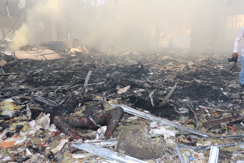 ويضيف: عند ارتكاب الجريمة وسقوط أول صاروخ لم أكن موجودا لكني وصلت لحظة سقوط الصاروخ الثاني حيث سقط وأنا في البوابة الرئيسية للقاعة وكان الموقف صعباً جدا وصفه.