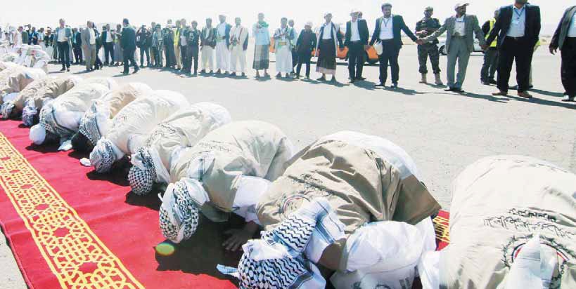 وتقدمت قيادات الدولة المدنية والعسكرية جموع المستقبلين للأسرى المحررين في مطار صنعاء، حيث فرش السجاد الأحمر وعزفت الفرق الموسيقية في استقبال الأسرى الأبطال.
