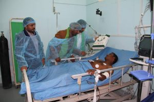 من جانبه أوضح مدير برنامج الخدمات الصحية في مؤسسة الشعب الدكتور مجيب الفقيه، أن زيارة الجرحى من أبطال الجيش واللجان الشعبية في مستشفى الجوف العام وتقديم الهدايا الرمزية لهم، تعتبر اقل واجب في حق هؤلاء الأبطال الذين نعتز بتضحياتهم وثباتهم وصمودهم في مواجهة العدوان، محققين الانتصارات المتتالية والمشرفة، لافتاً إلى أن هذه الزيارة تأتي ضمن المشاريع التي تنفذها مؤسسة الشعب في محافظة الجوف بمناسبة ذكرى المولد النبوي الشريف عليه وآله افضل الصلاة والتسليم.