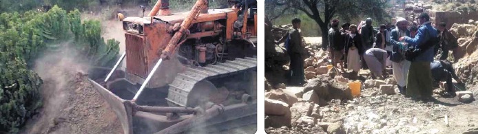 وفي السياق تتواصل بمديرية همدان أعمال شق شوارع حدودية في مناطق متداخلة بأراض زراعية وذلك بتعاون المجتمع وملاك الأراضي.