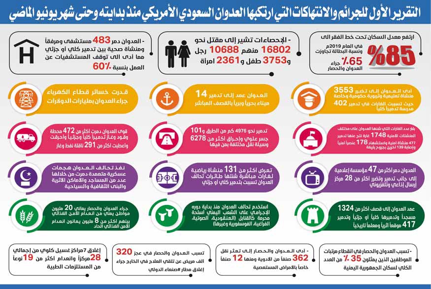 يُعد هذا التقرير الأول للفريق الوطني الذي يتضمن رصداً وتوثيقاً لأبرز الجرائم والانتهاكات الجسيمة التي ارتكبتها دول تحالف العدوان في اليمن.
