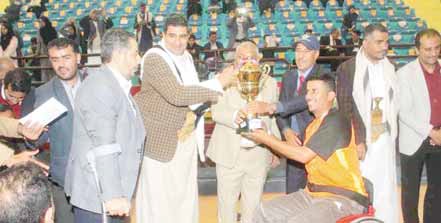 اختتمت صباح أمس على صالة نادي 22 مايو في صنعاء منافسات بطولة كرة السلة “كراسي متحركة” للمعاقين حركياً للرجال والسيدات وألعاب القوى (الجري) للمكفوفين (رجال، سيدات) التي نظمها الاتحاد العام لرياضة الأشخاص ذوي الإعاقة تحت شعار (في الميادين نستطيع) بدعم من الصليب الأحمر وتمويل صندوق رعاية وتأهيل المعاقين حركيا وصندوق النشء والشباب خلال الفترة 6- 13 ديسمبر الجاري.