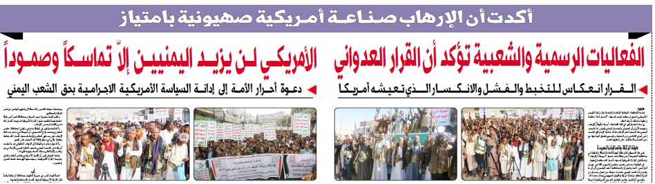الفعاليات الرسمية والشعبية تؤكد أن القرار العدواني الأمريكي لن يزيد اليمنيين إلاّ تماسكاً وصموداً