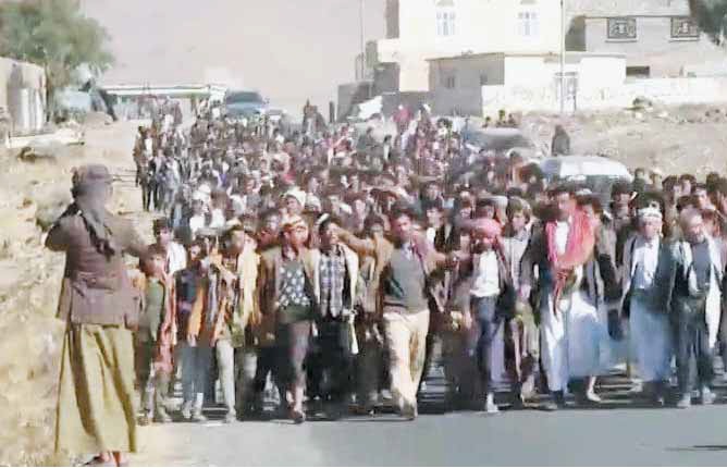 من جهتهم نظم أحفاد بلال بمديرية بني الحارث بأمانة العاصمة أمس وقفة احتجاجية للتنديد بالقرار الأمريكي بتصنيف أنصار الله منظمة إرهابية.