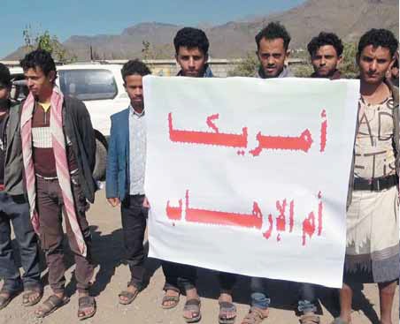 وردد المشاركون في الوقفة الشعارات المنددة بالإرهاب الأمريكي بحق شعوب المنطقة بصورة عامة والشعب اليمني بشكل خاص.