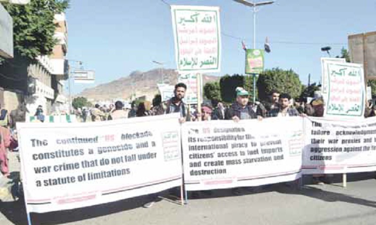 مليونية صنعاء: التصنيف الأمريكي لن يثني اليمنيين عن مواصلة معركة التحرّر والاستقلال والتصدي للمؤامرات