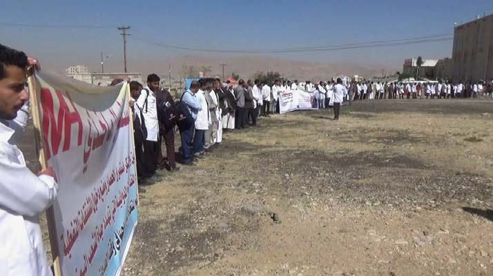 ونظمت الكوادر الطبية وموظفو مستشفى همدان العام في محافظة صنعاء أمس وقفة احتجاجية للتنديد باستمرار العدوان والقرصنة البحرية واحتجاز سفن المشتقات النفطية.