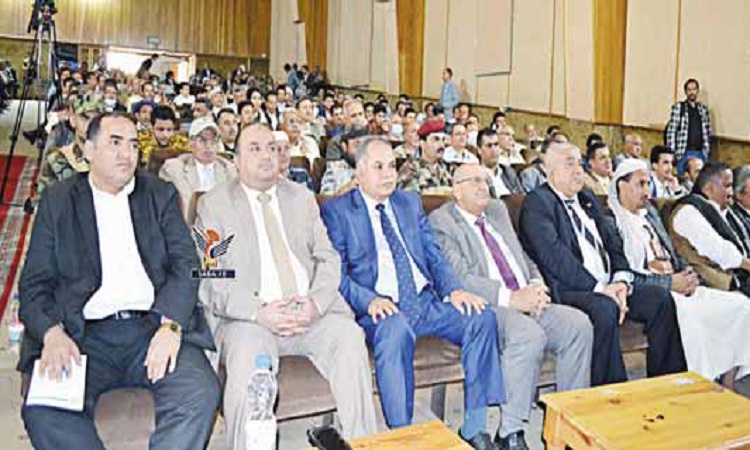 وفي الفعالية- التي حضرها وزيرا الزراعة والري المهندس عبدالملك الثور والتخطيط عبدالعزيز الكميم- أشار وزير الإرشاد وشؤون الحج والعمرة نجيب ناصر العجي إلى أن الشعب اليمني مقبل على أعتاب العام السابع للعدوان، والانتصارات تتوالى في مختلف الجبهات من قبل أبطال الجيش واللجان الشعبية.