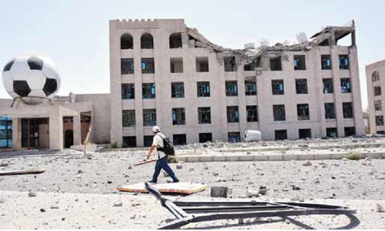 وحولت طائرات العدوان الملاعب الخضراء إلى حطام كما أحالت مقرات الأندية إلى أطلال تحكي قصة جنون يقودها آل سلول الذين اعتدوا على بلد الايمان والحكمة بصورة همجية.