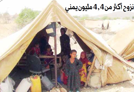 إضافة إلى نزوح أكثر من 4 ملايين و400 ألف يمني نتيجة القصف الذي طال جميع الأراضي اليمنية وذلك حتى نهاية فبراير 2021م، حيث إنَّ التحالف شن آلاف الهجمات العسكرية برا وبحرا وجوا على الأعيان المدنية المشمولة بالحماية الدولية.