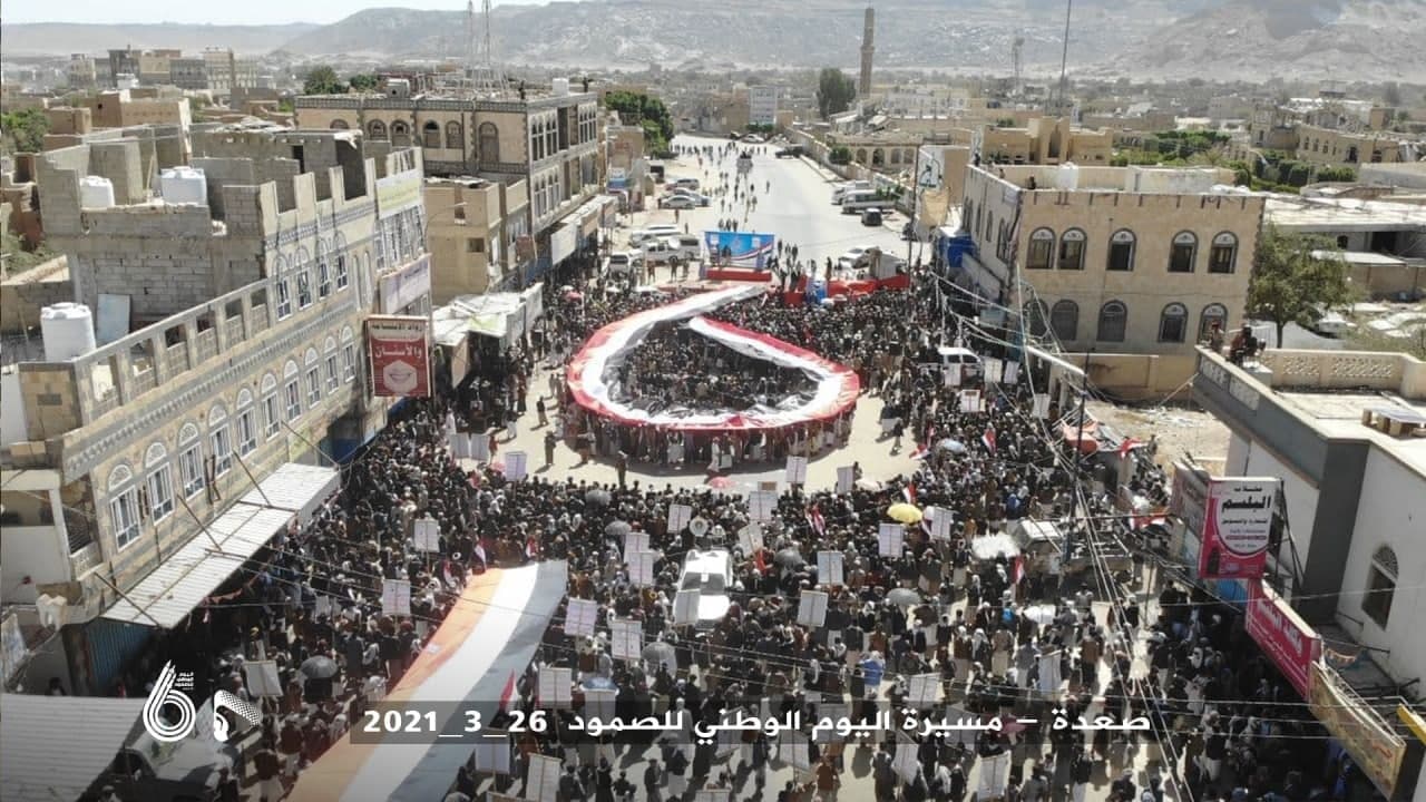 شهدت مدينة صعدة اليوم مسيرة جماهيرية حاشدة بمناسبة اليوم الوطني للصمود.