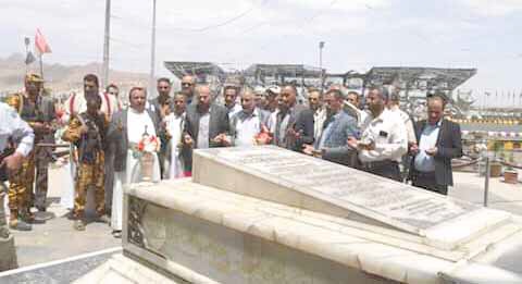 وزارت قيادات من المكتب السياسي لأنصار الله والأحزاب المناهضة للعدوان أمس ضريح الرئيس الشهيد صالح الصماد ورفاقه بميدان السبعين.