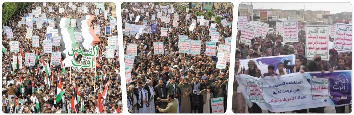 الأخ طه السفياني – من رئاسة الوزراء – تحدث بدوره لـ”الثورة” فقال: اليوم خرج شعبنا ليؤكد وحدة المصير فصنعاء هي القدس والقدس هي صنعاء واليمنيون يخرجون اليوم في حين أن هناك من الأعراب من ترك فلسطين وذهب ليطبع مع إسرائيل والكيان الصهيوني المغتصب لأرضنا العربية ومقدساتنا الإسلامية، كما أن شعبنا يؤكد للمطبعين الذي يسيرون فيما يسمى بعملية السلام بأن السلام مع العدو الصهيوني لن يجدي فما أُخذ بالقوة لا بد أن يستعاد بالقوة، لأننا نرى أن السلام الذي يزعمون لم يحقق شيئاً في القضية الفلسطينية وما زالت فلسطين برمتها تحت نظام الاحتلال.