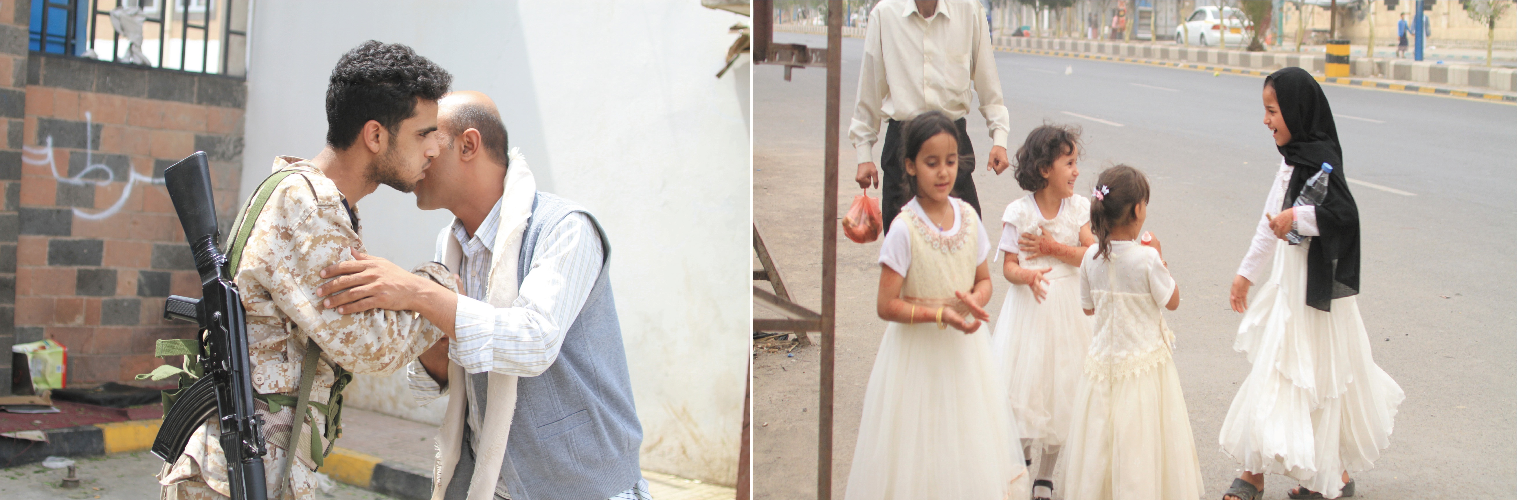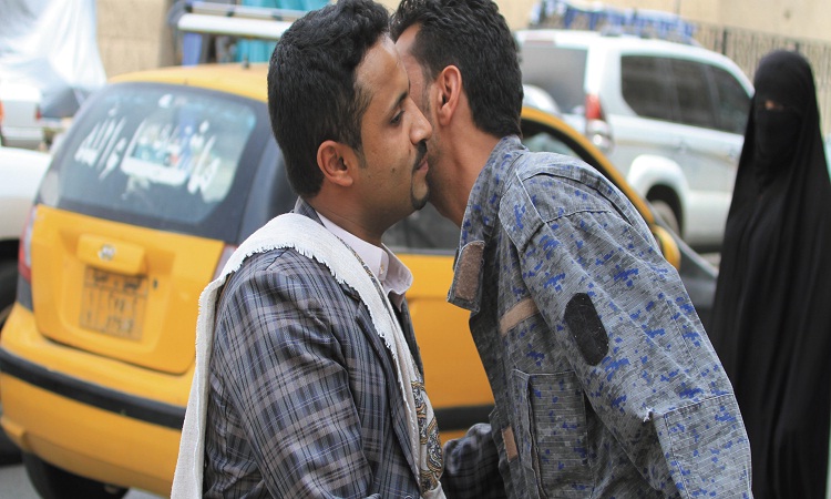 يقبل اليمنيون على بعضهم البعض فيتصافحون ويتعانقون وينسون خلافاتهم،
