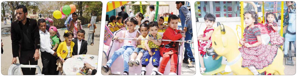 ينتظر الأطفال قدوم العيد بشغف وفرحة لا توصف لارتداء الملابس الجديدة والذهاب للحدائق والمتنزهات للعب والبحث عن الرسامات المتواجدات في الحدائق للرسم على وجوههم -كل حسب رغبته- وقضاء أوقات سعيدة والشعور بفرحة العيد الحقيقية وتحدي كل الظروف المحيطة باليمن من حصار خانق وازمة اقتصادية تسبب بها عدوان لا يرحم راح ضحيته الملايين من أبناء شعبنا الصامد والمثابر.. وسط استعدادات الحدائق العامة لاستقبال الزائرين ورغبة المواطنين والأطفال في الفرح ونسيان كل الجروح.