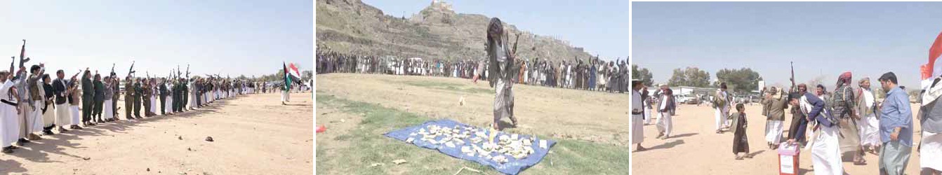 وخلال عرض القافلة، نفذ أهالي المديرية وقفة قبلية أكدوا فيها وقوفهم مع الشعب والمقاومة الفلسطينية، كموقف نابع من تاريخ طويل لليمن لمناصرة القضية الفلسطينية ومناهضة الظلم والاستبداد.