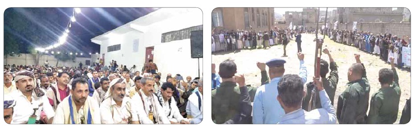 كما أقيمت أمس بمديريات الجميمة والشاهل ومبين وبكيل المير ووشحة والمغربة ونجرة في محافظة حجة، فعاليات بالذكرى السنوية للصرخة في وجه المستكبرين.