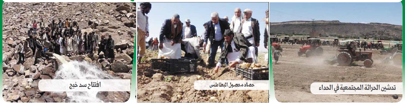 الحراثة المجتمعية هي الأخرى كان لها حضور في برنامج اللجنة الزراعية العليا حيث دشن في مديرية الحدا وادي مخدرة موسم الحراثة المجتمعية والذي تنفذه وحدة الحراثة بالمؤسسة العامة لتنمية وإنتاج الحبوب بالتنسيق مع مكتب الزراعة، وفي التدشين، اكد عضو الزراعية العليا وكيل وزارة الإدارة المحلية عمار الهارب على أهمية مشروع الحراثة في استصلاح الأراضي واستغلال الموسم الزراعي والإمكانيات المتاحة للنهوض بالقطاع الزراعي خصوصا في ظل العدوان والحصار، مشيراً إلى أن مشروع الحراثة المجتمعية يأتي ضمن اهتمامات القيادتين الثورية والسياسية بالزراعة وتوحيد جهود الجميع لزيادة إنتاج مختلف أنواع المحاصيل بما يكفل تحقيق الأمن الغذائي وأنه سيتم حصاد الثمرة الأولى لهذا المشروع في موسم صيف.. مشيدا بجهود وحدة الحراثة ومبادرة المجتمع ودوره في إنجاح المشروع.