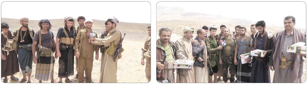 الى ذلك تفقد عدد من أعضاء مجلس الشورى والمكتب السياسي لأنصار الله، أحوال المرابطين في جبهات الزاهر والصومعة ونعمان بمحافظة البيضاء.