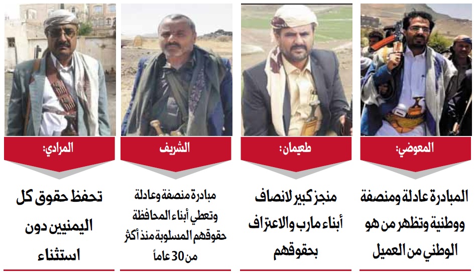 الشيخ محمد علي طعيمان عضو مجلس الشورى وأحد كبار مشائخ محافظة مارب أكد من جانبه أن المبادرة حظيت بارتياح كبير من قبل أبناء محافظة مارب الأحرار والعقلاء، وعمقت الثقة بين أبناء مارب وبين القيادة كونها تمثل حسن النية وخارطة طريق للخروج من الواقع التي تعيشه المحافظة وتعبِّر عن الاهتمام والاعتبار والإنصاف لمارب وأهل مارب بشكل عام.