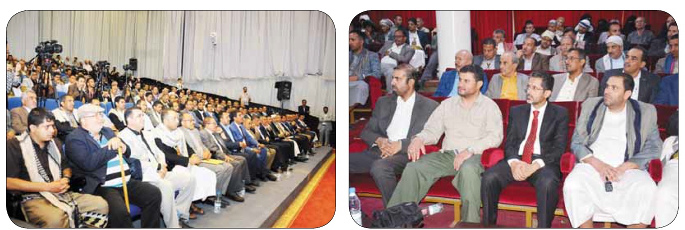 ولفتا إلى تآمر دول الجوار بخاصة السعودية على اليمن في مختلف مراحله وتعمده إثارة الفتن بين أبناء الشعب الواحد تارة بدعوى الملكيين والجمهوريين وأخرى بين الشمال والجنوب ورفض منجز الوحدة ومحاولة القضاء عليه في عام 94 م وزعزعت أوضاع البلاد بالتفجيرات واختطاف السياح وإرهاب المستثمرين لمغادرة البلاد دون أي استثمارات أو استكشافات نفطية ناجحة وأخيرا بهذا العدوان المنهزم مع دول الاستكبار العلمي تخلل الاحتفالية فقرات فنية معبرة .