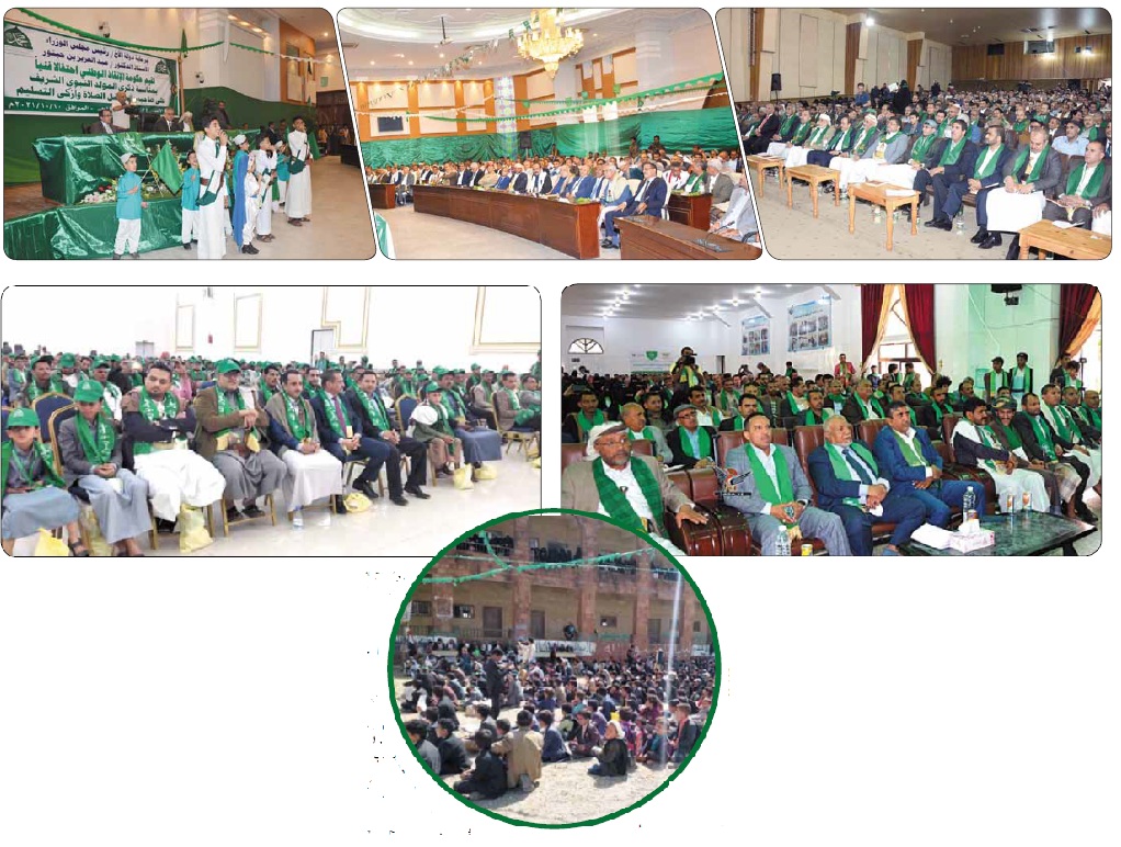 كما شهدت مديريات همدان وسنحان وبلاد الروس والحيمتين وبني مطر وأرحب ونهم وصعفان ومناخة وخولان وجحانة والطيال والحصن وبني ضبيان، أمسيات على مستوى المدن والعزل والقرى ابتهاجا بذكرى مولد النبي الكريم.